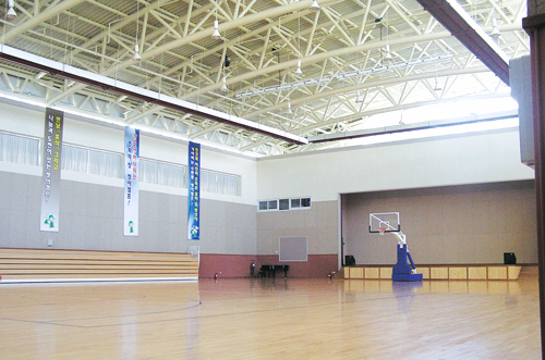 전자동 수납식 관람석(300명), 2층 관람석(200명), VIP관중석, 농구,축구,배구,탁구대, 전자동 스크린, 빔프로젝트, 전자시계 등 |